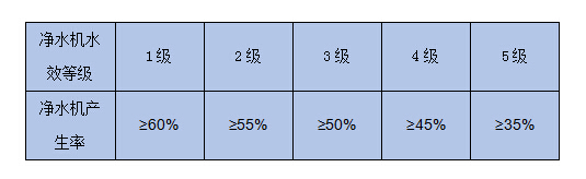 凈水機水效等級:凈水機的水效等級分為5級,其中5級水效最低
