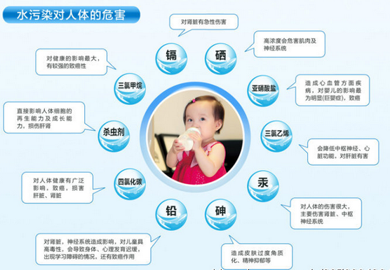那么凈水器與水污染之間有什么關(guān)系呢?由于社會的發(fā)展,人為活動的破壞使地球上水質(zhì)嚴重遭受污染,人們生活用水同時招到嚴重污染。根據(jù)調(diào)查顯示,全球每年有三分之一的家庭用水困難。評價每年遭受水污染患病的人數(shù)有4500萬人,而且每年在持續(xù)增長。因為水污染而死亡人數(shù)有3000萬人,其中大部分是兒童。而對于中國來說,大部分城市用水都存在安全隱患。近年來工廠逐漸向農(nóng)村轉(zhuǎn)移,部分農(nóng)村飲水問題越被嚴重污染。所以,水污染對健康的危害已經(jīng)迫在眉睫,必須得到解決。