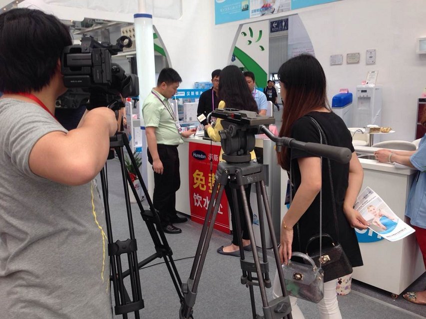 在交易會現(xiàn)場,記者看到人流量最集中的是一家家用凈水器品牌的展廳前,這家漢斯頓凈水器企業(yè)早前就代表昆山進交會明星參展企業(yè)亮相昆視新聞。聚集在這里的消費者大多是被展廳工作人員現(xiàn)場演示凈水器制水過程吸引過來的。門口的免費飲水臺現(xiàn)場制水可以提供直接飲用也吸引了不少消費者駐足了解。工作人員在不停的派發(fā)宣傳畫冊講解產品知識現(xiàn)場熱鬧非凡。