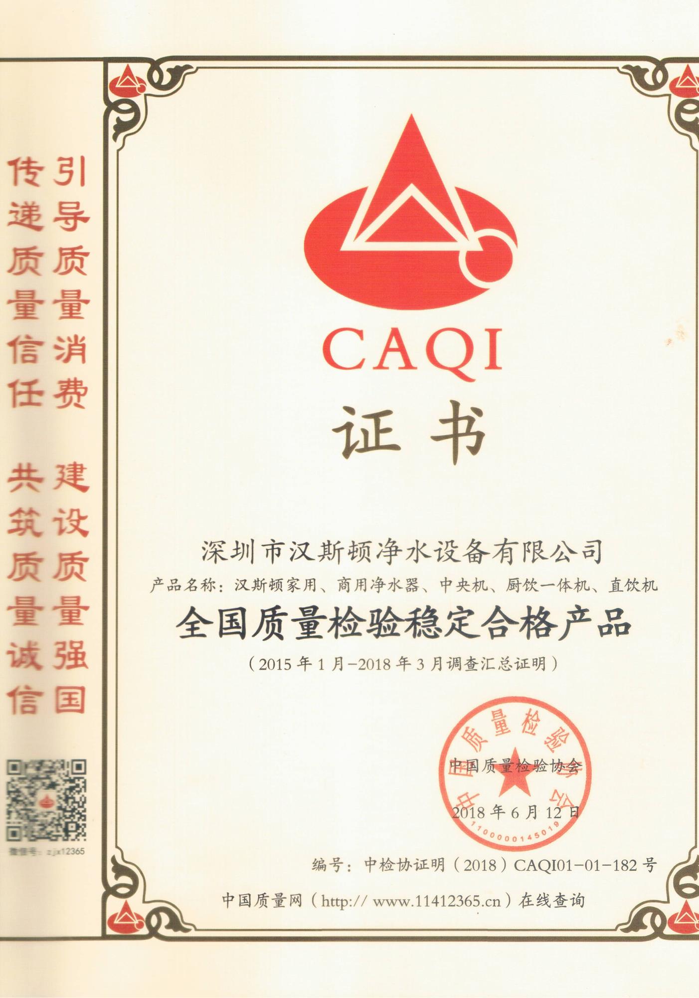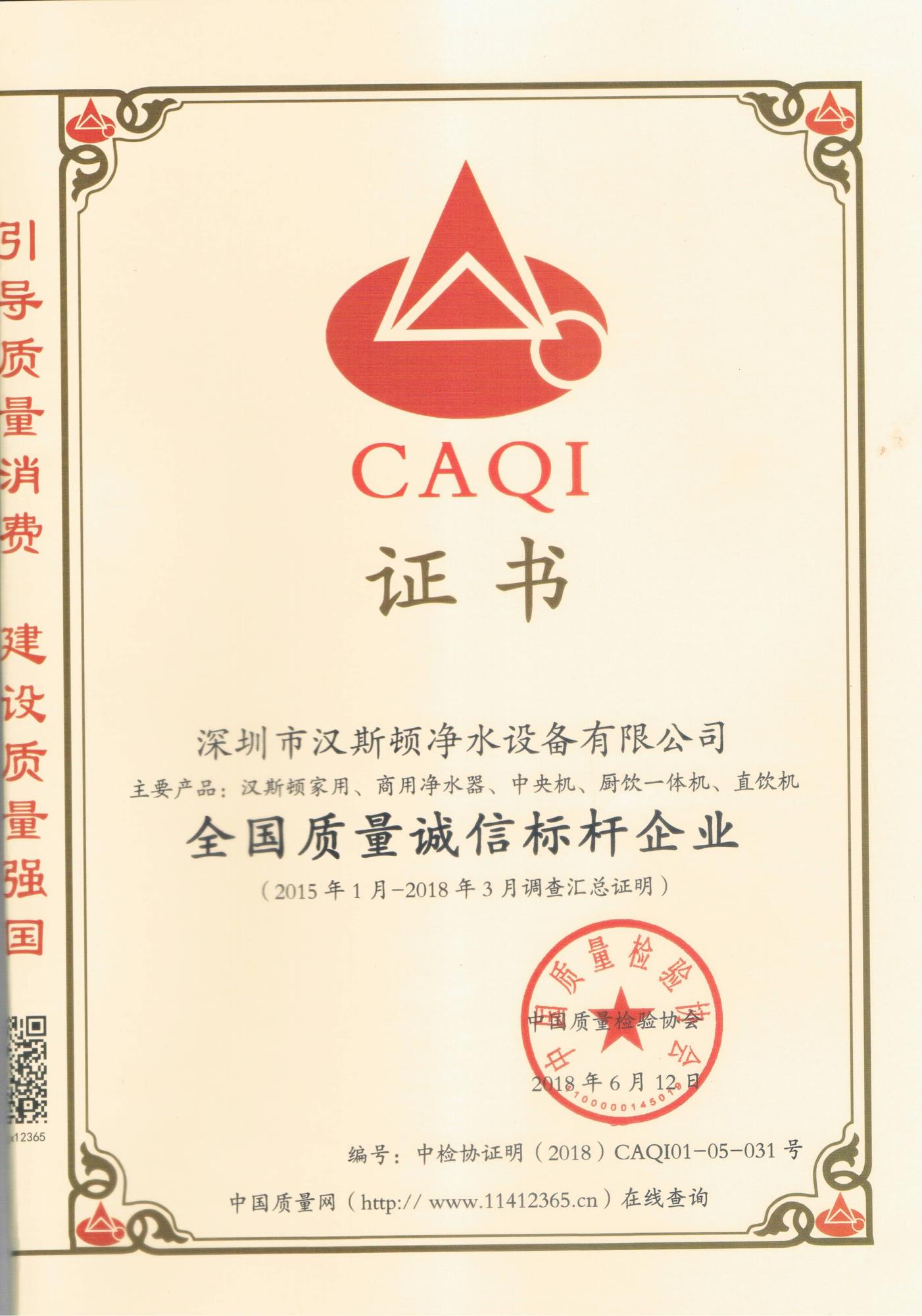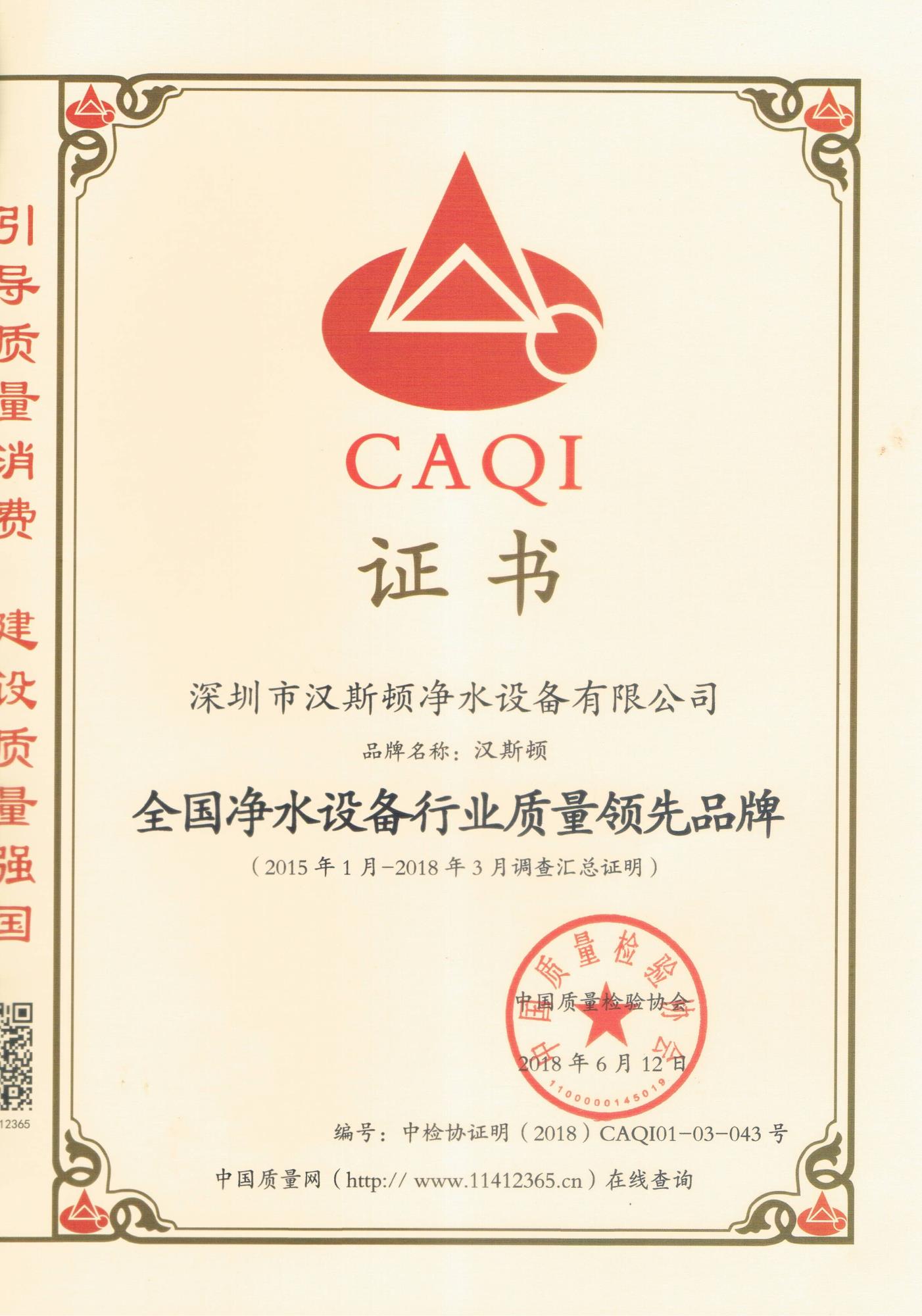 質(zhì)量是企業(yè)的生命,一個企業(yè)想要在競爭中乘風(fēng)破浪,立于不敗之地,若不講求質(zhì)量,注重信譽(yù),就可能就此隕落。近日漢斯頓獲得由中國質(zhì)量檢驗(yàn)協(xié)會頒發(fā)的“全國質(zhì)量誠信標(biāo)桿企業(yè)”、“全國凈水設(shè)備行業(yè)質(zhì)量領(lǐng)先品牌”“全國質(zhì)量檢驗(yàn)穩(wěn)定合格產(chǎn)品”以及中國質(zhì)量技術(shù)監(jiān)督頒發(fā)的“質(zhì)量品牌優(yōu)秀上榜企業(yè)”等多項(xiàng)權(quán)威認(rèn)證。