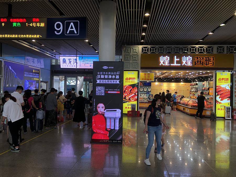 深圳北站、廣州南站是兩大城市的重要交通樞紐,具有人流量大、覆蓋范圍廣、亮相頻率高等特點,也正因為此,漢斯頓以高端廣告牌為載體,布局客流核心區域——以乘客人流走向規劃媒體點位,集中分布于候車大廳、檢票口、安檢區等醒目區域,經過雙面一體LED大屏廣告的投放方式,聚焦推行“全屋凈水高端品牌,漢斯頓凈水器”。