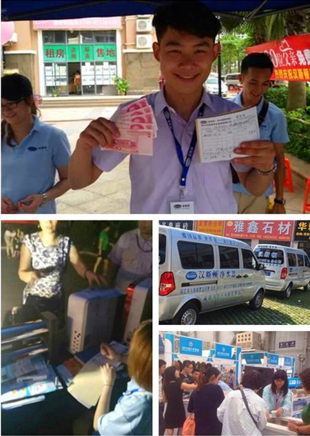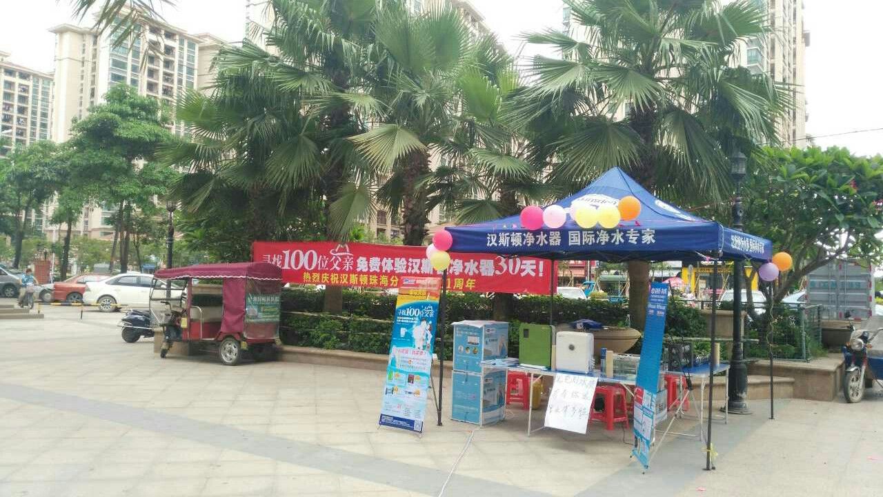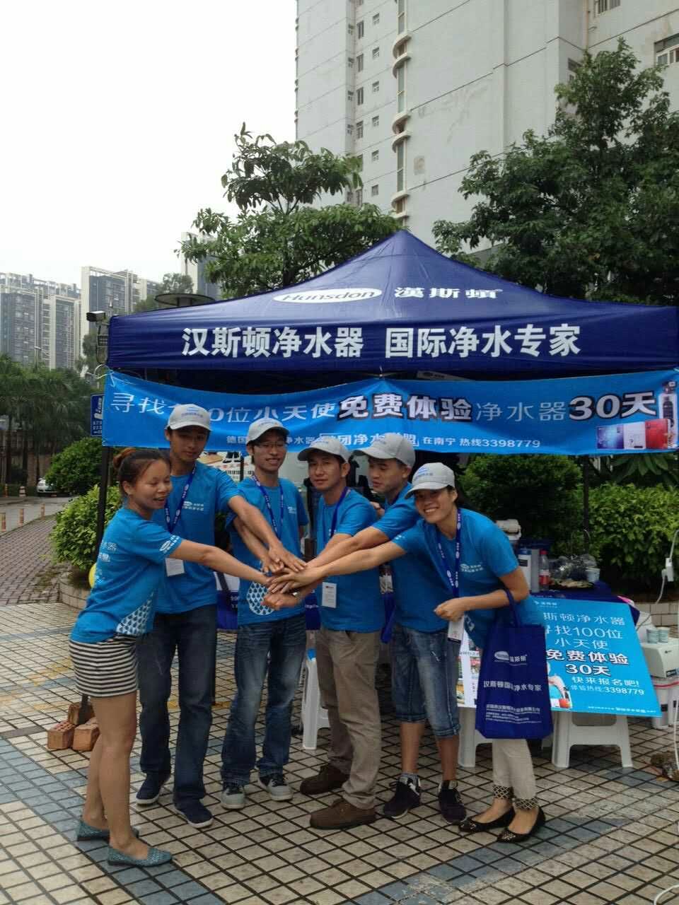 近幾天天氣很好,為此次活動提供了成功的條件,在優越的條件下,公司隊員搭建了具有漢斯頓形象的大帳篷,擺上了公司各式各樣的產品,有家用凈水器、軟水機、家用純水機、廚房凈水器,廚飲一體機,RO反滲透機,中央凈水器,直飲凈水器等,其中熱銷產品是家用凈水器和廚房凈水器,也有代表公司形象的高端產品RO反滲透機,還有新研發產品超濾機也一同展示在終端消費者眼前。同時宣傳漢斯頓公司形象的KT板,擺放明顯,讓社區消費者一目了然,也受到了消費者的好評。為了有助于銷售,公司還提供了很多可觀的贈品,促進了新顧客對漢斯頓的購買興趣,同時贈送的各式各樣贈品也提高了老顧客的購買量。公司隊員在現場給消費者不斷的介紹漢斯頓產品的特點以及購買建議,使得社區活動進行的非常熱鬧,吸引更多消費者前來購買。此次社區活動取得令人滿意的成果不僅有賴于前期領導的指導與活動的策劃。同時具有漢斯頓產品特色的活動現場也離不開現場工作人員的精心設置,現場整體流程井然有序,也為活動打下了基礎,當然活動圓滿的成功,更離不開消費者的大力支持。
