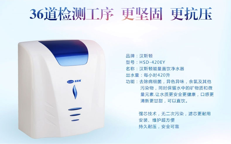 5、品牌優(yōu)勢:漢斯頓多次榮獲"國家凈水行業(yè)委員會常務(wù)理事單位、國家凈水器及其系統(tǒng)標(biāo)準(zhǔn)化工作組成員單位、中國凈水器3AAA企業(yè)、中國凈水器十大品牌、中國凈水器行業(yè)標(biāo)桿企業(yè)、國際凈水器十大品牌、歐洲凈水器行業(yè)協(xié)會理事單位、國際凈水器核心材料研究中心 "等頭銜,因此具備大品牌的實(shí)力優(yōu)勢。