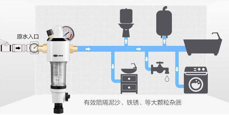 對全屋用水的第一道粗過濾設備,可以去除管道所產生的沉淀雜質和細菌、微生物殘骸、鐵銹、沙泥等大于5微米以上的顆粒雜質。